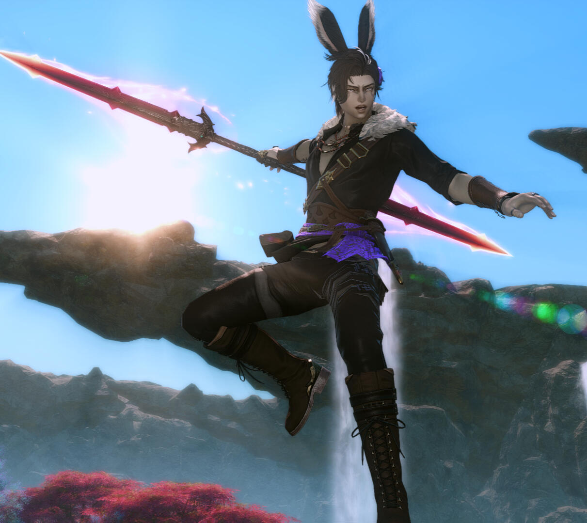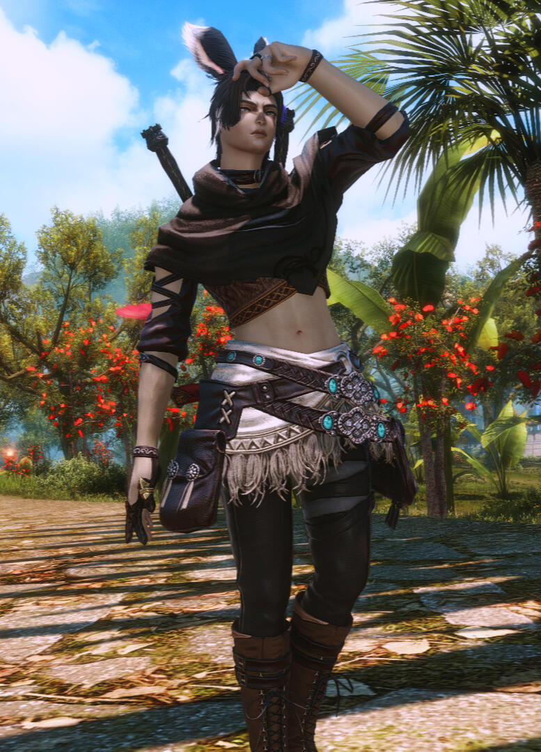 Behind Solstice’s grey eyes linger the memory of the Garlean invasion and the stone he regrets ever touching. Long nights under the stars keep those questions alive.He is known in Kozama’uka as an esteemed hunter, fighting with the spear given to him by his clan-sister Echo and with techniques modeled after the vipers of Tural. Away from the jungle, he favors the skies. His Bronco-class airship, the Duchess, is his preferred means of conveyance between places, chosen over the pull of aetherytes.Though over a century old, he bears the youthful look common to his kind. Even beyond Kozama’uka, the world still seems strange to him. To most, he seems eccentric and even a bit naive. What complicates matters is an ongoing internal discord that rarely leaves him in silence. He navigates it carefully, and despite the strain, his thoughts and choices remain his own. He is quick to disarm reactions to his eccentricity with food: Solstice is a skilled cook, and he always carries squares of his cornbread to share with anyone who looks hungry.He seeks power, redemption, and a chance to become more in the eyes of those he's lost. He believes he knows precisely how to do that... but the stars may have other plans.
